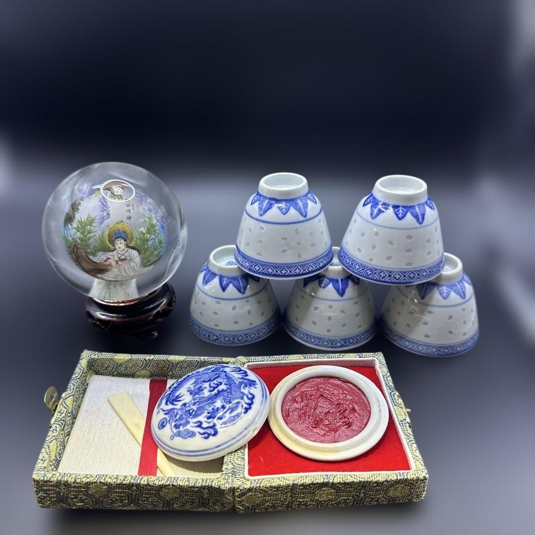 幕末平戸焼の輸出用磁器染付鬼面把手化粧水入れです。「平戸焼絵譜/山口雅夫」に同型のものが掲載されています。酒次としても。容量約200ml 高さ 約11.3cm前後外側底部に画像の直し、内部にも、画像にありませんが、銀を蒔いた大雑把な漏れどめ直しがあります。サイズはおおよそです。実物と画像とでは多少色合いが異なる場合があります。古いものですので時代なりのスレ疵汚れ等あります。説明文と画像を見てご納得の上お求めください。| カテゴリー: | ホビー・楽器・アート>>>工芸品>>>陶芸 |